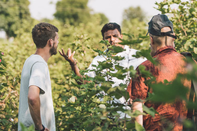 That starts at a materials level, by choosing natural organic fibres. Organic cotton is better for the producers and the ecosystem in which it is produced. Instead of more toxic pesticides, fertilisers or plastic, organic farming encourages biodiversity and leads to the extra soft feel of our products. This leads to higher earnings for farmers with better soil quality and water security, with food crops grown on the same soil in the dry season. Less inputs also means less water, but even organic cotton is still a thirsty crop. So where you grow it matters. The fields that grow the organic cotton for Teemill products are in the North of India, where the monsoons fill reservoirs that supply almost all the water needed.