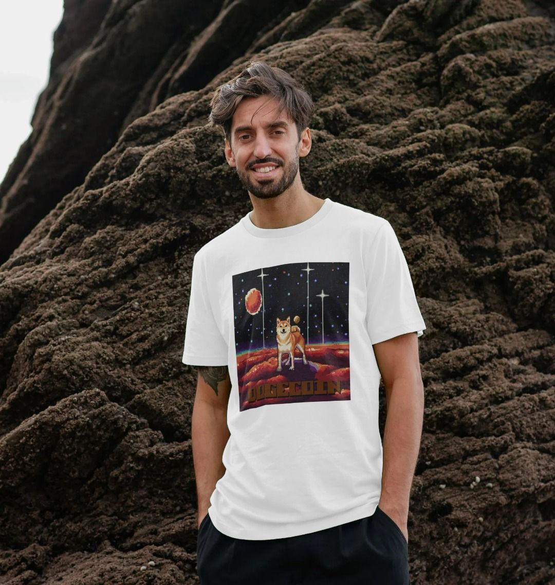 This tee goes further than the moon - but to mars! Designed by Dall-e 2 AI technology! Our new range is made using natural material and renewable energy but most importantly they’ve been designed from the start to come back to our partner factory when they’re worn out. They recover the material and make new products from it - so there is no waste. Check out the QR code on the care label for the details.